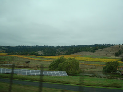 ここしばらく暑い日が続いていたサンフランシスコ。でもゴールデンゲートブリッジを通りぬけ、ナパのほうに向かうと葉っぱの色が変わっていて、秋だなーということにようやく気づきます。ぶどう畑を通り抜けると、ぶどうの発酵したにおいが車の中にもぷーんと・・・・。