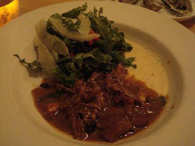 1日目の晩ご飯が、近所で唯一あいていたピザ屋だったので、もう少しいいもん食べたいよ、と、古そうなお屋敷風ホテルの1階にあるレストランへ。キッズフレンドリーなレストランじゃなかったらどうしよう、と思ったのですが、アメリカのいいところは、結構レストランに子供を連れていきやすいことかも。テーブル席の横にストローラーをつけさせてもらって、出産後初めてのファンシーディナーを堪能しました〜いやー、これは嬉しかった。
