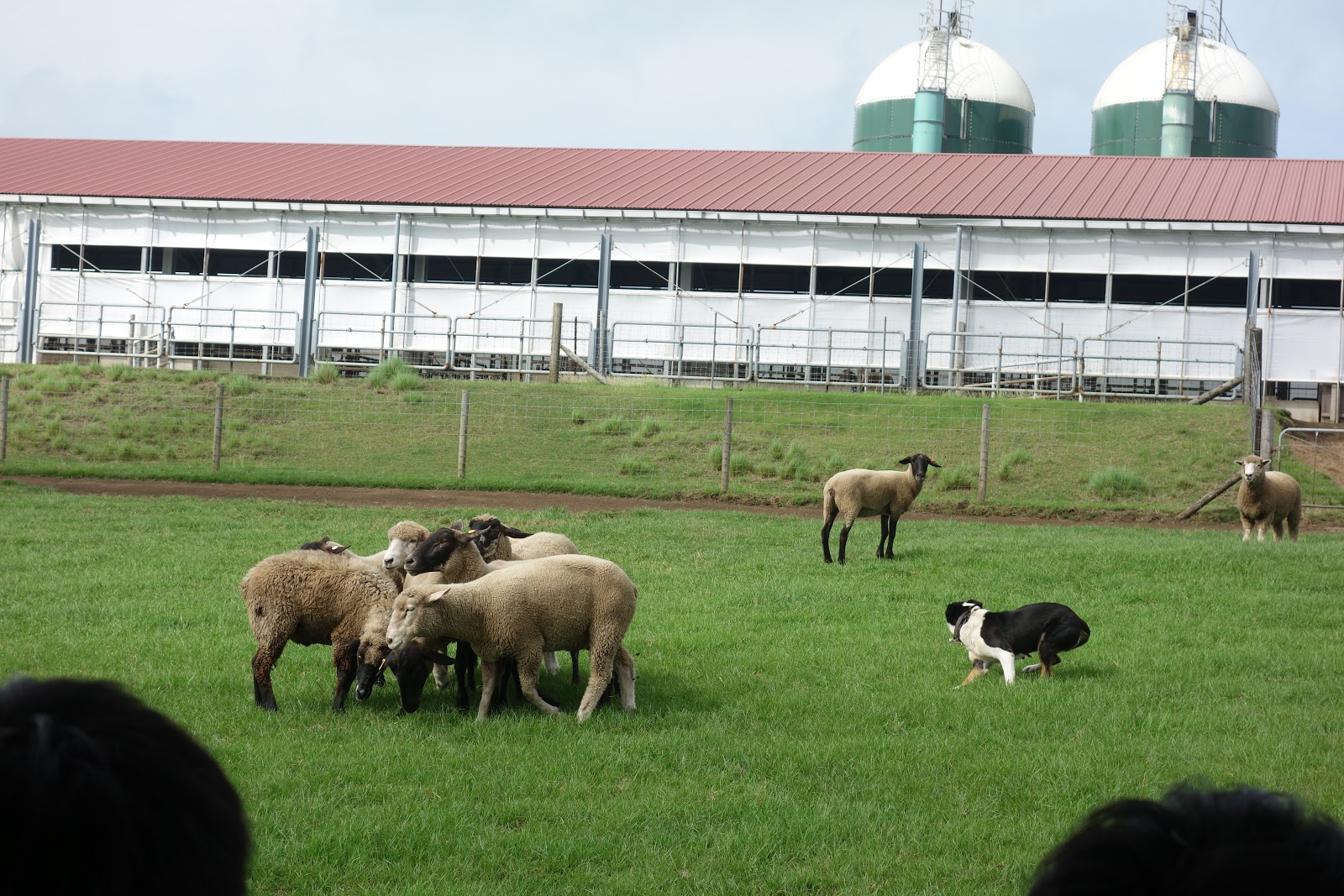 そして一緒にトラクターに乗っていた牧羊犬が途中で飛び降り、羊を威嚇し集団移動させる技を披露してくれる。働く犬ってなんて賢くて可愛いのだろう。