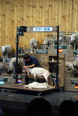 このショー、一日2−3回やってるみたいなのですが、そのたびに毛刈りされる羊が用意されるってことか・・毛は伸びるとはいえ、随分沢山の羊を用意しないといけないんじゃないだろうか。湯水の如く毛を刈りまくることができる位羊がいるマザー牧場すげー。