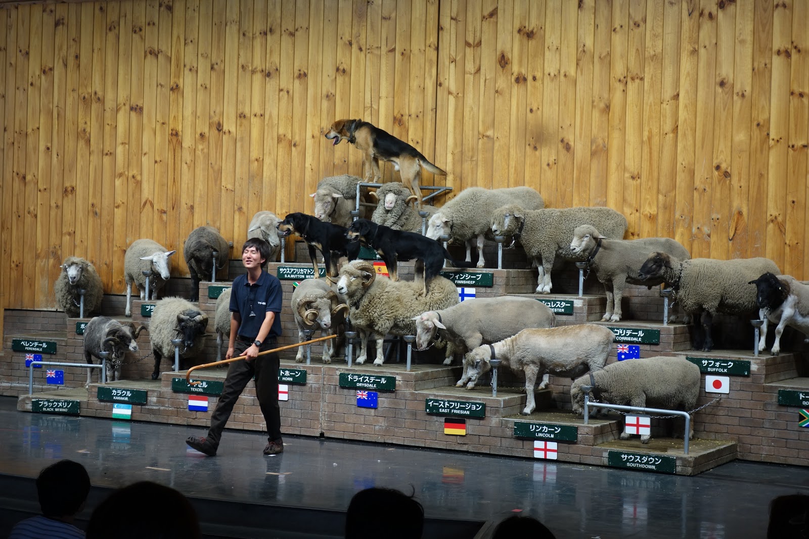 そして圧巻だったのが、この世界の羊ショー。羊使いのお兄ちゃんが、色んな国原産の羊たちについて紹介、解説してくれるのだが、この羊たち、1頭ずつ登場して自ら所定の位置で立ち止まる。目の前にあるエサ目当てで行ってはいるのだが、なんだか面白い。