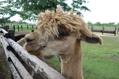 ぶらり途中下車して、羊やラマとしばしのお戯れ。というより手にもったエサが欲しくて寄ってくる。