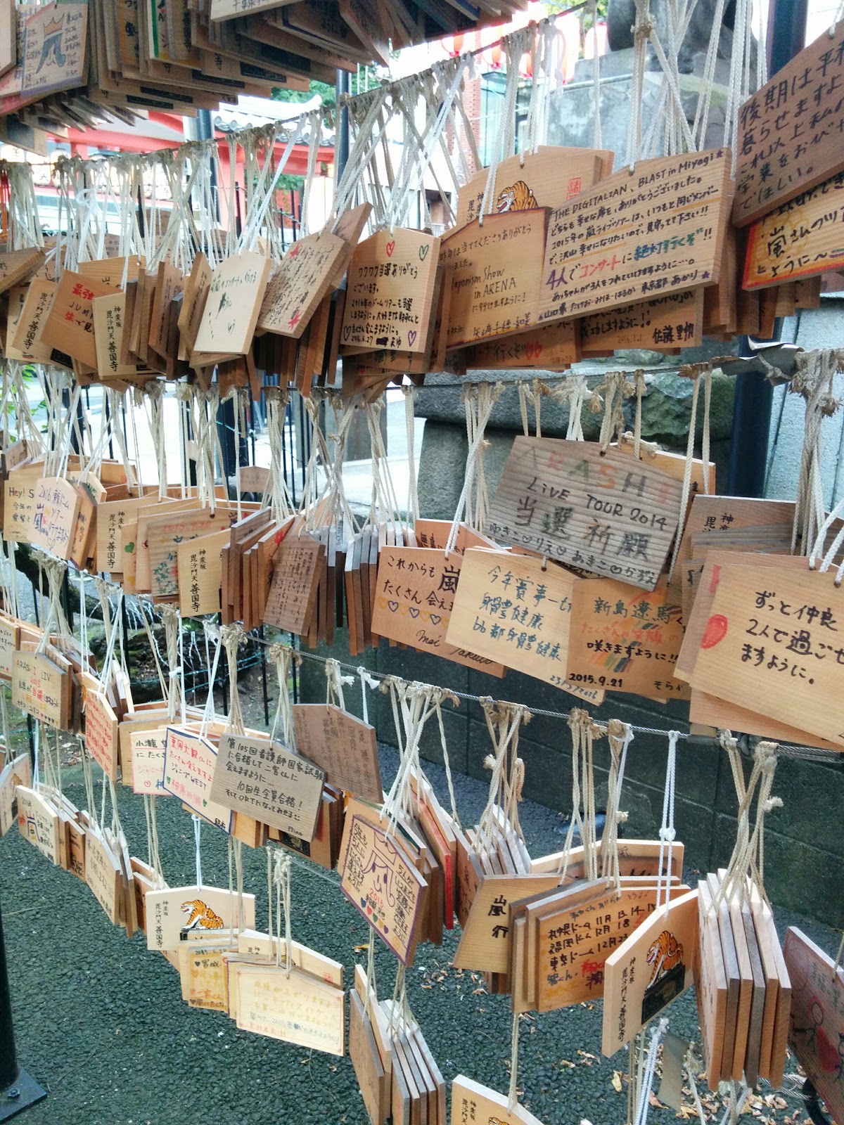 - 同級生の家に遊びにいったついでに神楽坂へ。善国寺の境内にあった絵馬は、なぜか全てほとんどジャニーズ系のお願い(嵐のコンサートのチケットが当たりますようにとか)ばっかりだったんですが、なんで?